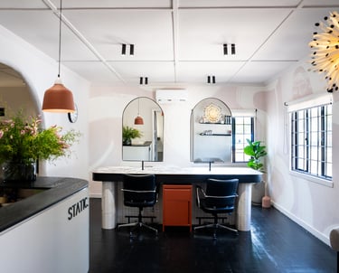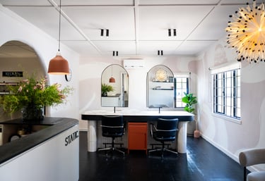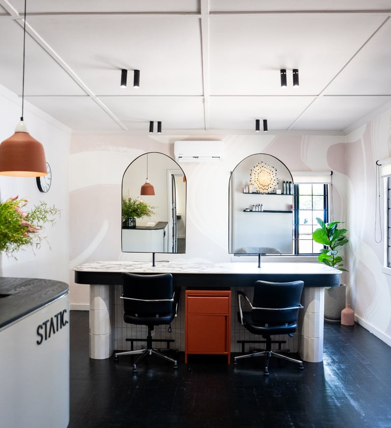 Experience modern elegance and natural tones in our upmarket hair salon, where good vibes create the perfect atmosphere.